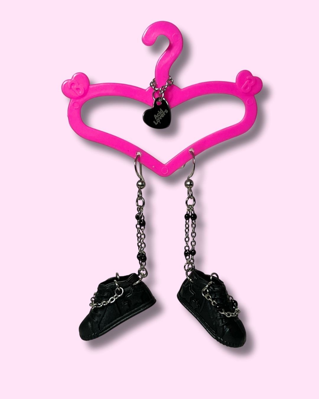 Dale un toque divertido a tu look con estos aros de Zapatillas de Barbie Negras con cadenas y mucho estilo!