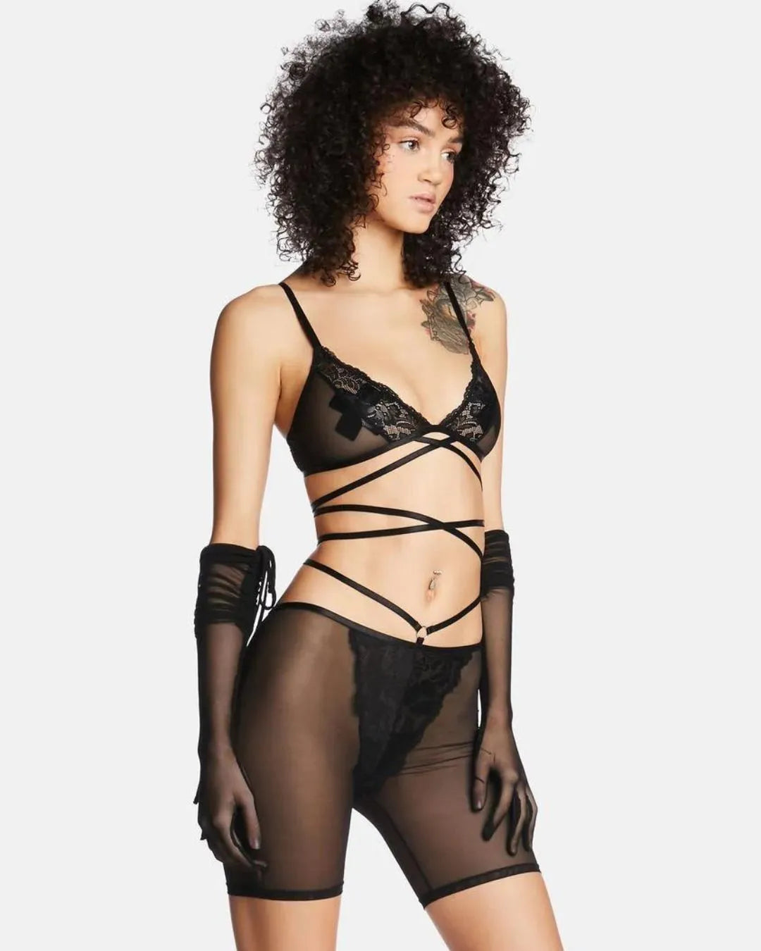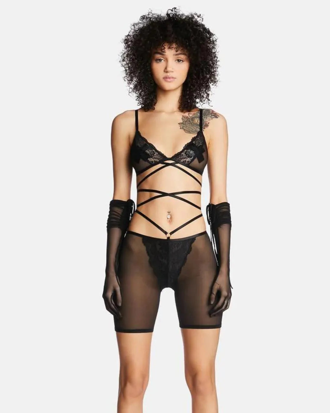 Lenceria Satellite of Love, malla, encajes y tirantes ajustables .